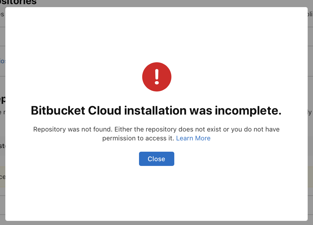 After connecting to GitHub, I also tried to connect through the web version, but I'm getting the same message: "Bitbucket Cloud installation was incomplete." I received this same message when I first tried to connect through Xcode.