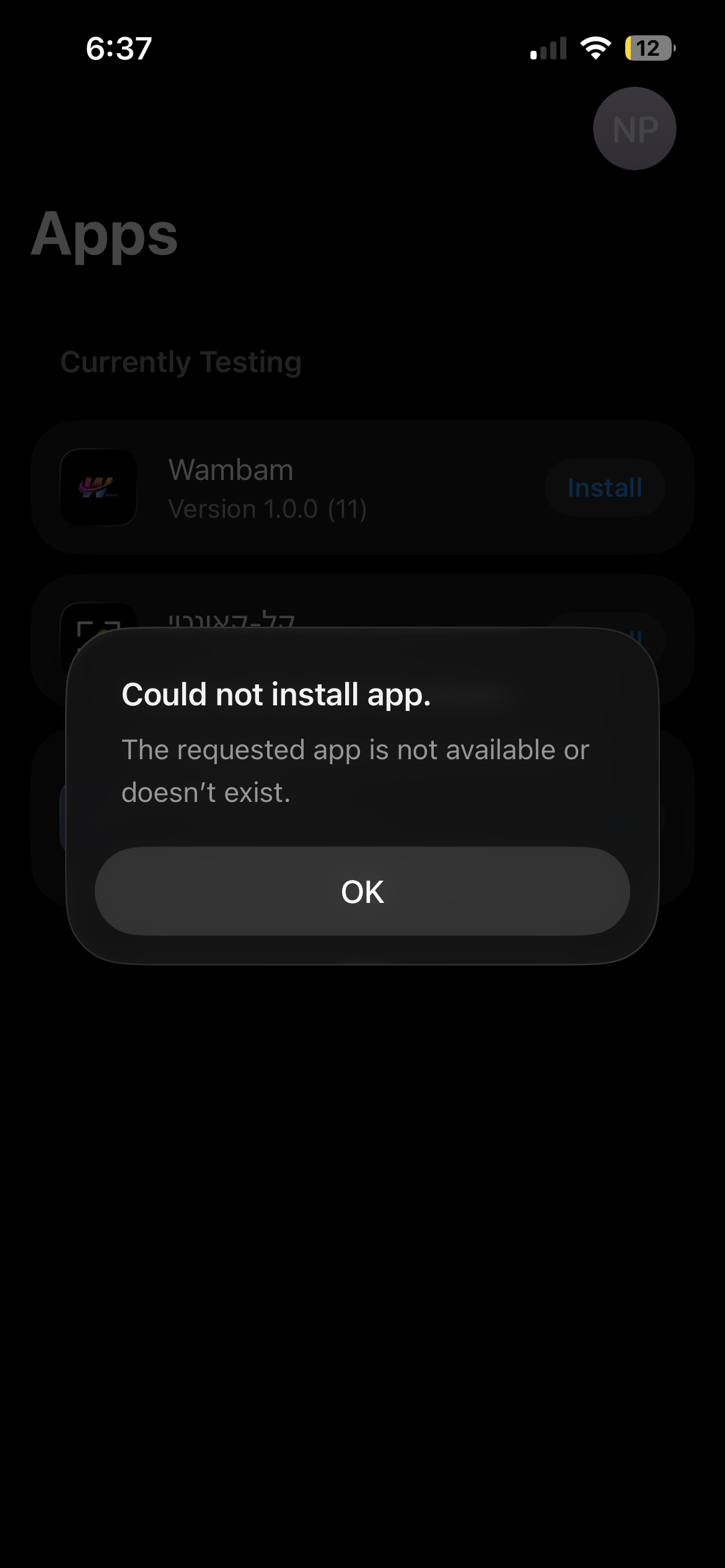 I am encountering an issue where I am unable to install the app from TestFlight. The installation fails or does not proceed as expected. Please advise on how this can be resolved. I have tried restarting the device and reinstalling TestFlight and reinvite the users but the problem persists.