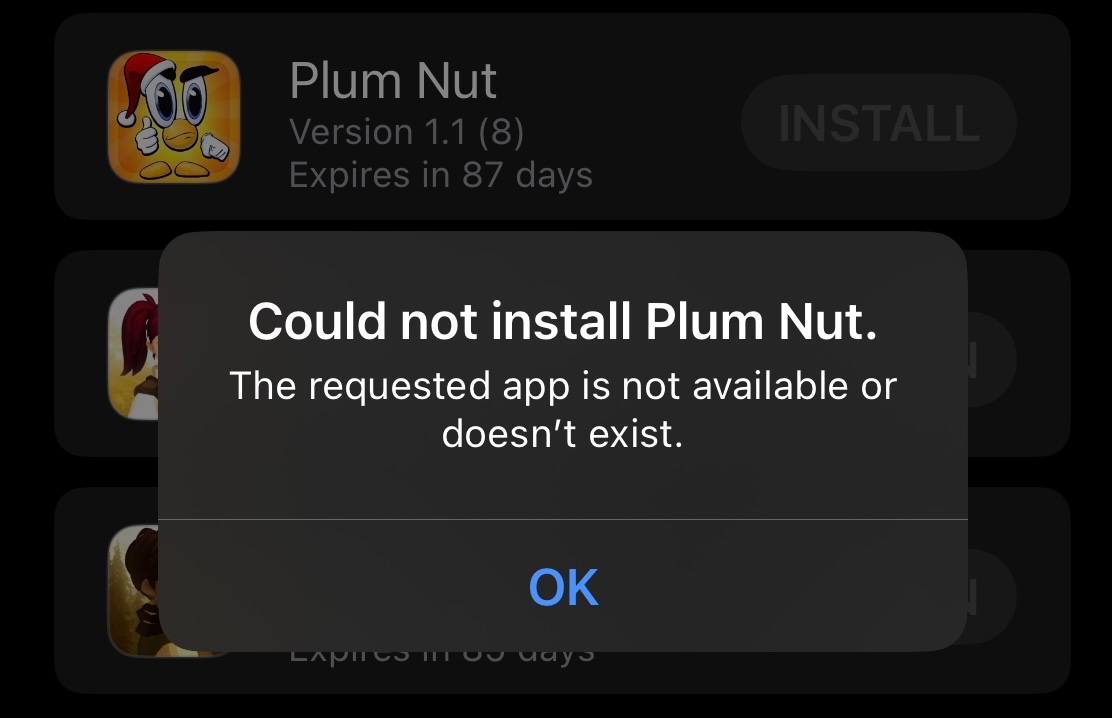 “Could not install Plum Nut. The requested app is not available or doesn’t exist.”
