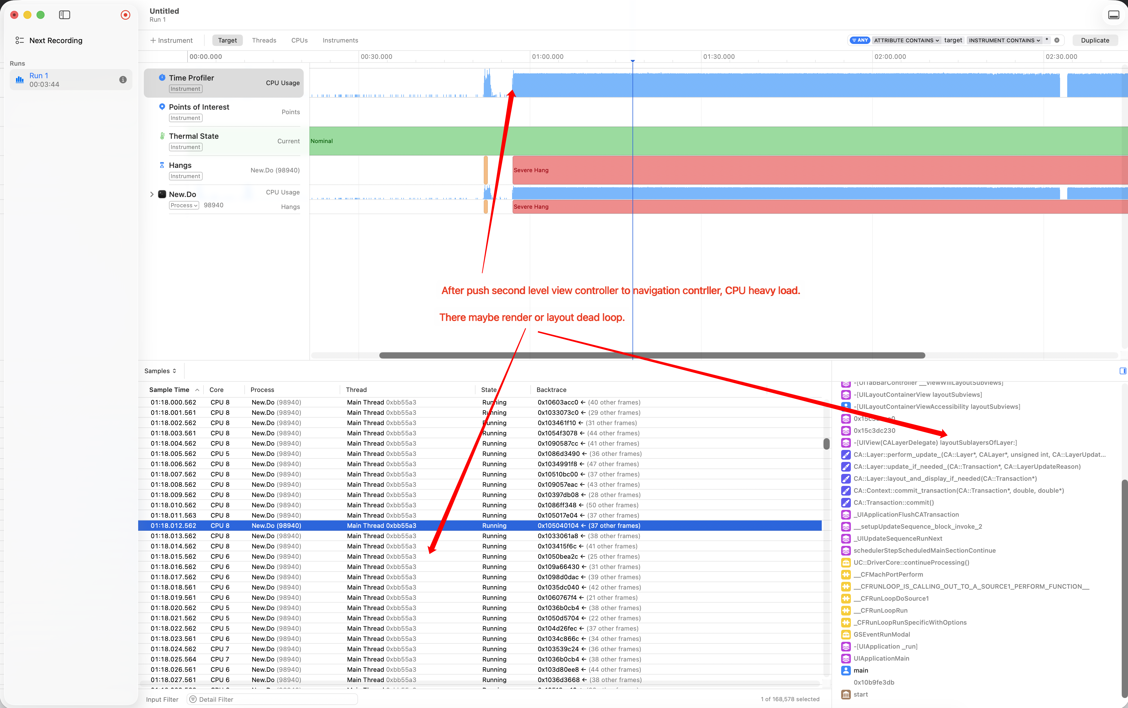My app doesn't respond on iPhone Air iOS 26.1. After startup, my app shows the main view with a tab bar controller containing 4 navigation controllers. However, when a second-level view controller is pushed onto any navigation controller, the UI freezes and becomes unresponsive. The iPhone simulator running iOS 26.1 exhibits the same problem.