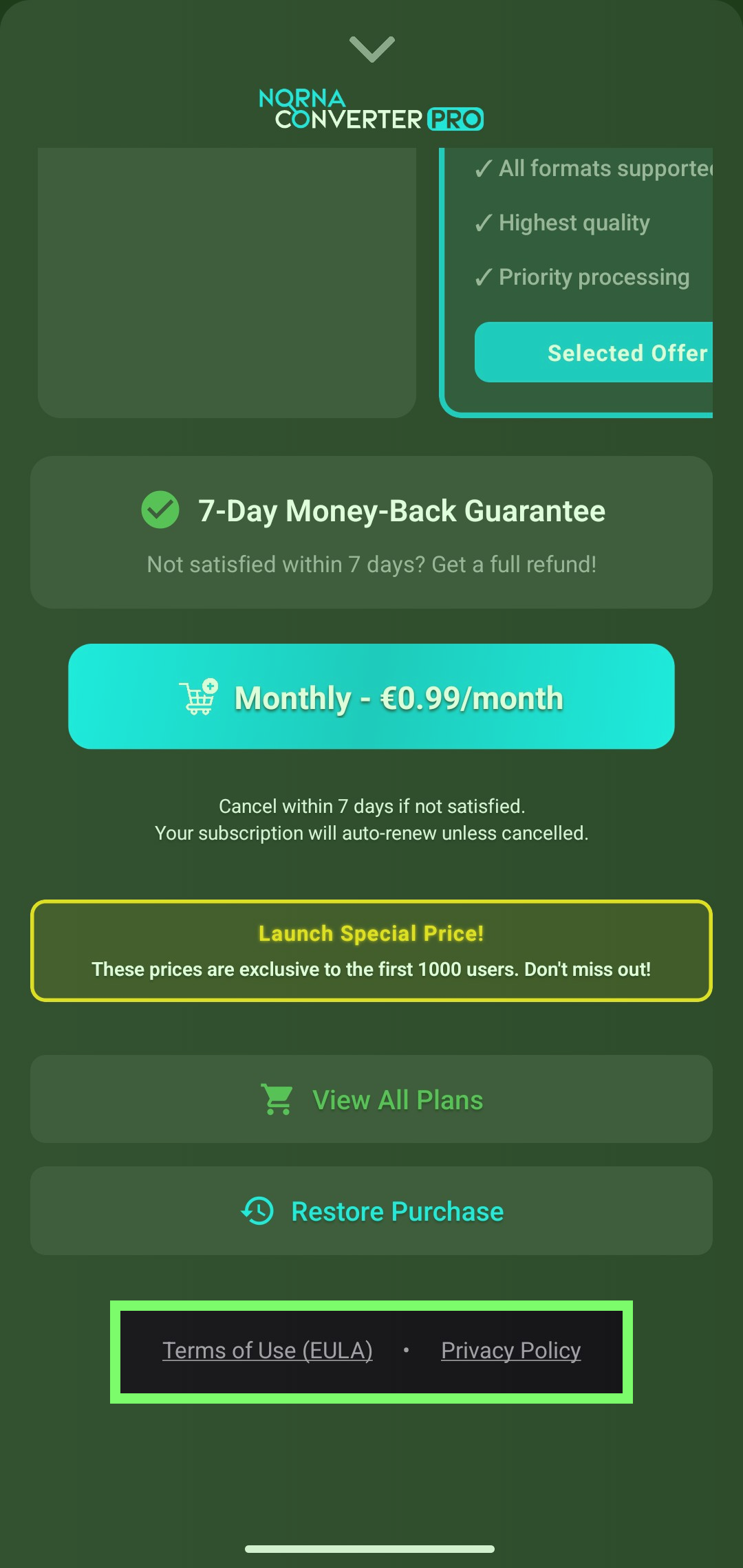 - A functional link to the Terms of Use (EULA). If you are using the standard Apple Terms of Use (EULA), include a link to the Terms of Use in the App Description. If you are using a custom EULA, add it in App Store Connect."