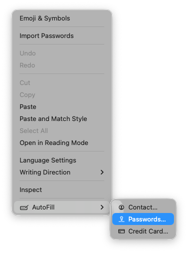 I noticed, that even though my AutoFill Credential Provider Extension works with Safari for both Passwords and Passkeys, it doesn't work in context menus inside arbitrary textfields, meanwhile the same is true for the Apple Passwords app. This is a great hit to AutoFill productivity, as my extension is unable to fill textfields by just going to the context menu and clicking AutoFill > Passwords..