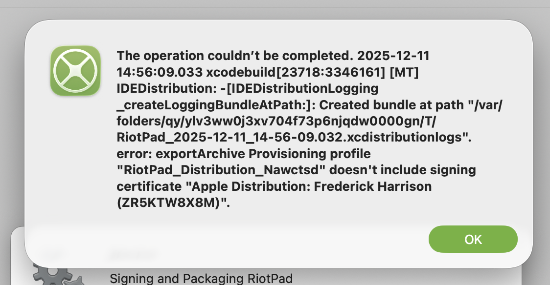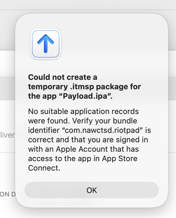 com.nawctsd.riotpad is the Bundle Identifier in the app and in the App ID Configuration.
