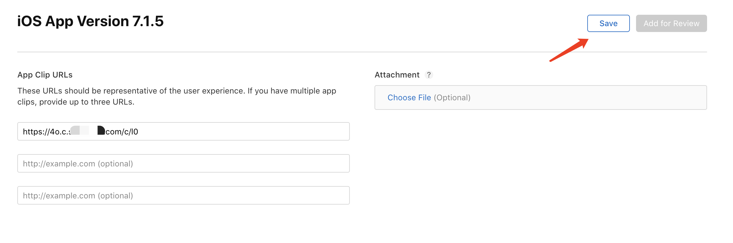 I am encountering a persistent error in App Store Connect when attempting to save URLs in the App Clip URLs section of my app version.