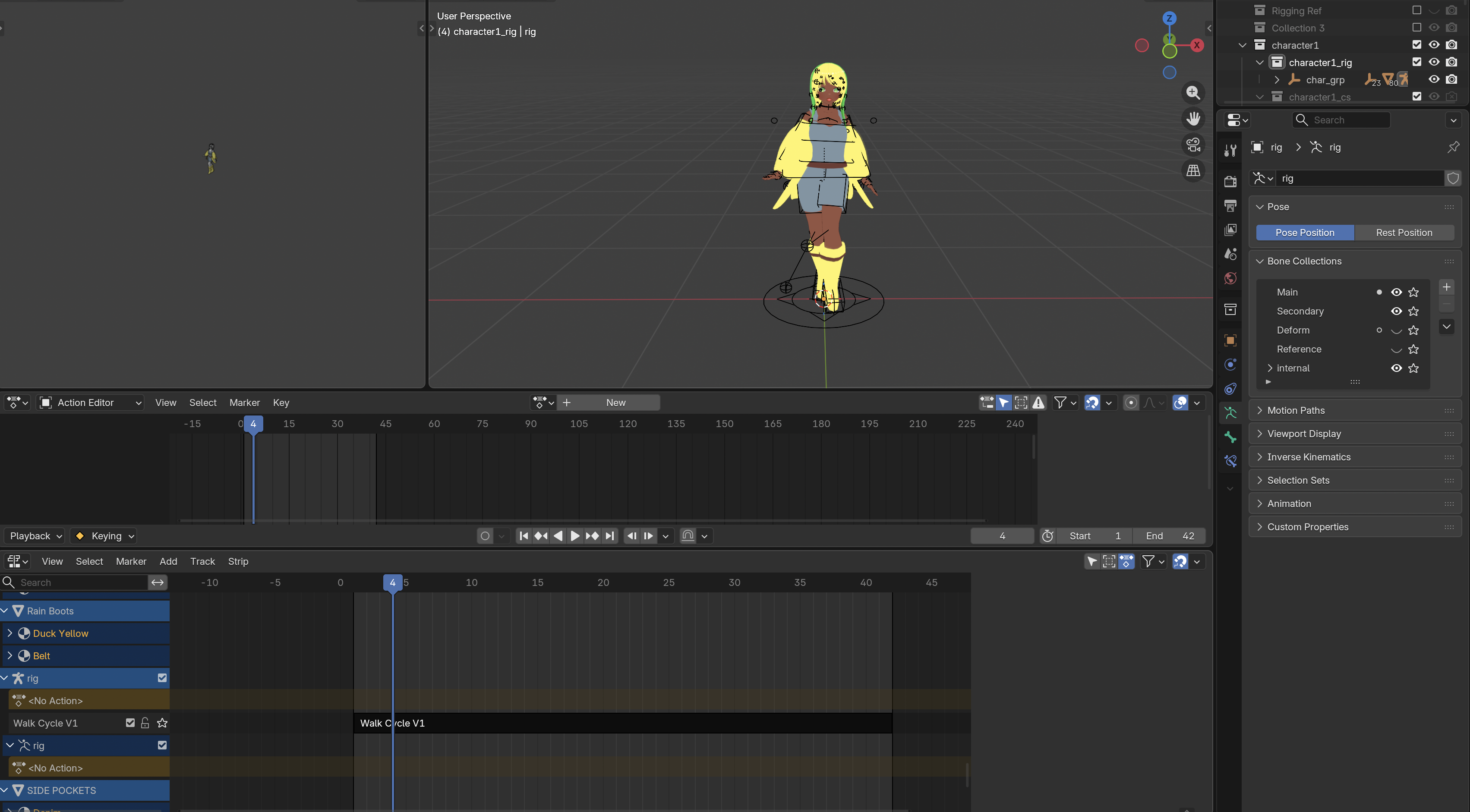 - Pushing the Mixamo keyframes into an NLA strip. I'm pretty sure this is the correct line of action, but I'm definitely not doing something right.