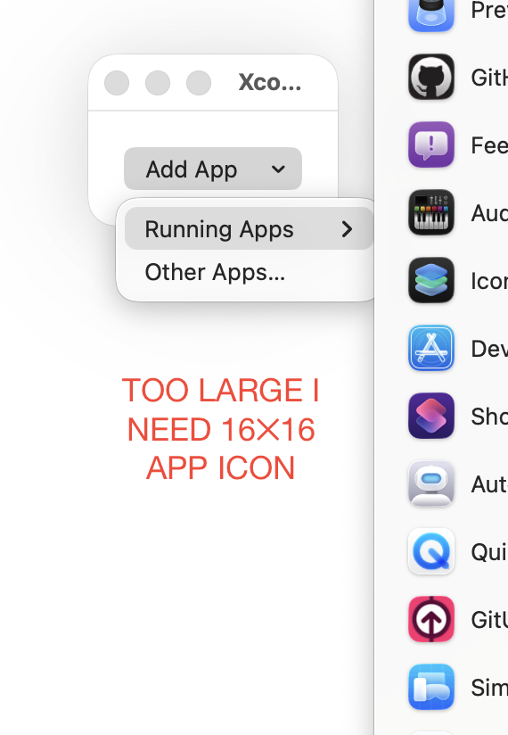 I failed to resize the icon image from instances of NSRunningApplication. I can only get 32×32 while I'm expecting 16×16.