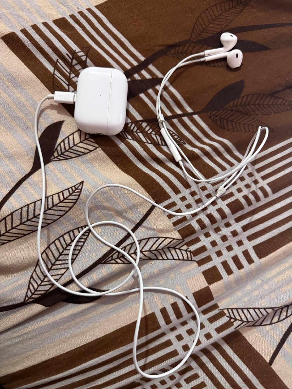 User plugs wired earphones into the AirPods case (or a future AirPods accessory port)