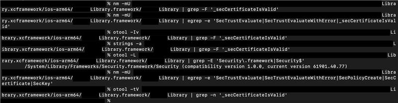 The SDK is written in Objective-C and uses only public Security APIs. It does not use any deprecated APIs. We have verified the framework binary using nm, otool, and strings, and _SecCertificateIsValid does not appear in exported or hidden symbols. Bitcode is disabled, dead-code stripping is enabled, and the Release build uses -Os.