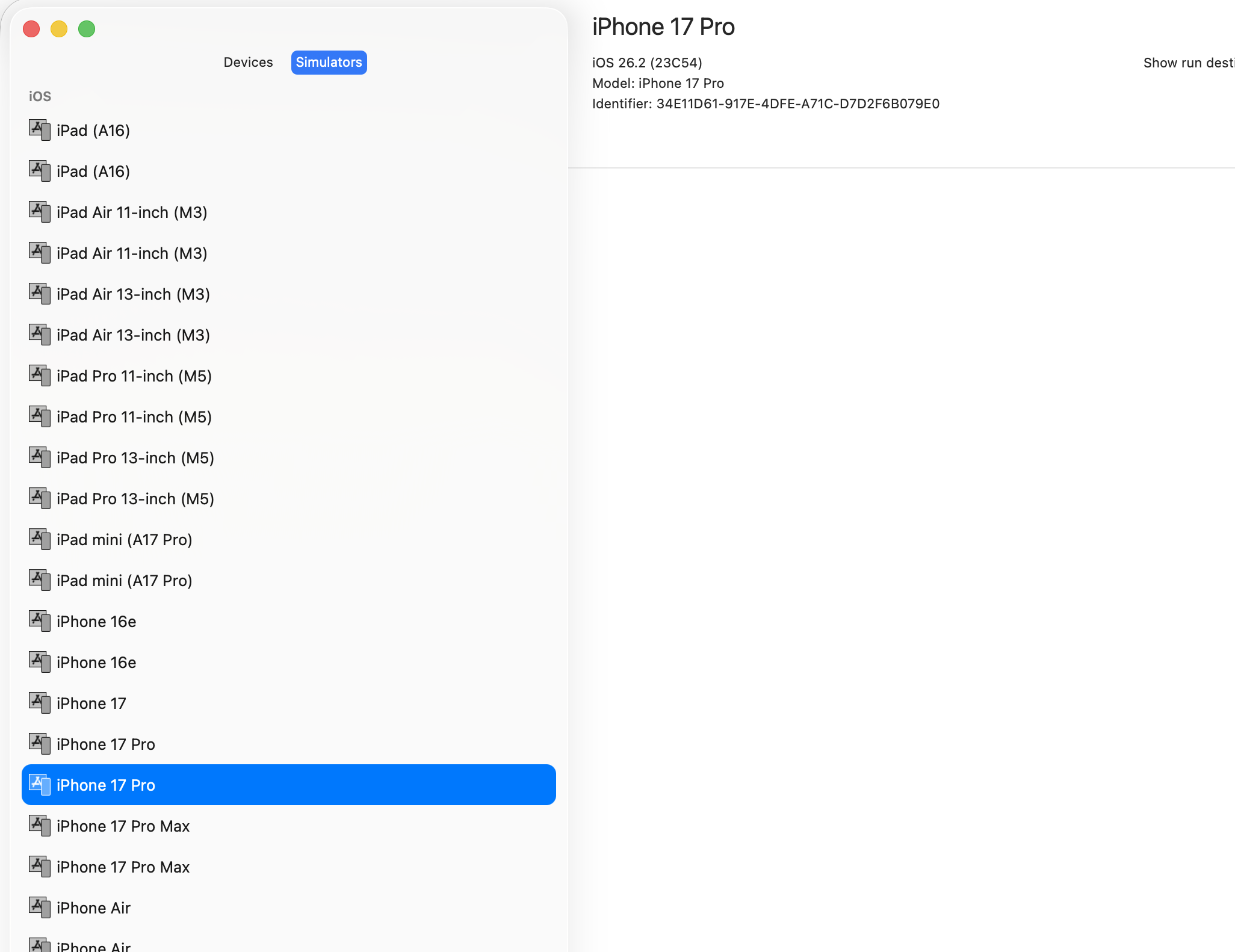 Ok, this message usually means Xcode can’t find a connected physical device that matches the deployment target or provisioning profile settings of your project. If you planning to use the simulator as shown in your screenshot, select a Simulators, go to the device toolbar in Xcode → choose a simulator (e.g., iPhone 17 Pro). Build & run, the project will launch in the simulator instead of looking for a physical device. Or better yet, connect a Physical Device. Connect your iPhone/iPad via USB. Trust the Mac when prompted on the device. In Xcode, the device should appear under “Connected Devices” in the toolbar. Check Deployment Target & Provisioning Profile. Make sure the deployment target supports your device’s iOS version. In Signing & Capabilities, confirm a valid provisioning profile is selected. Hope this helps a little.