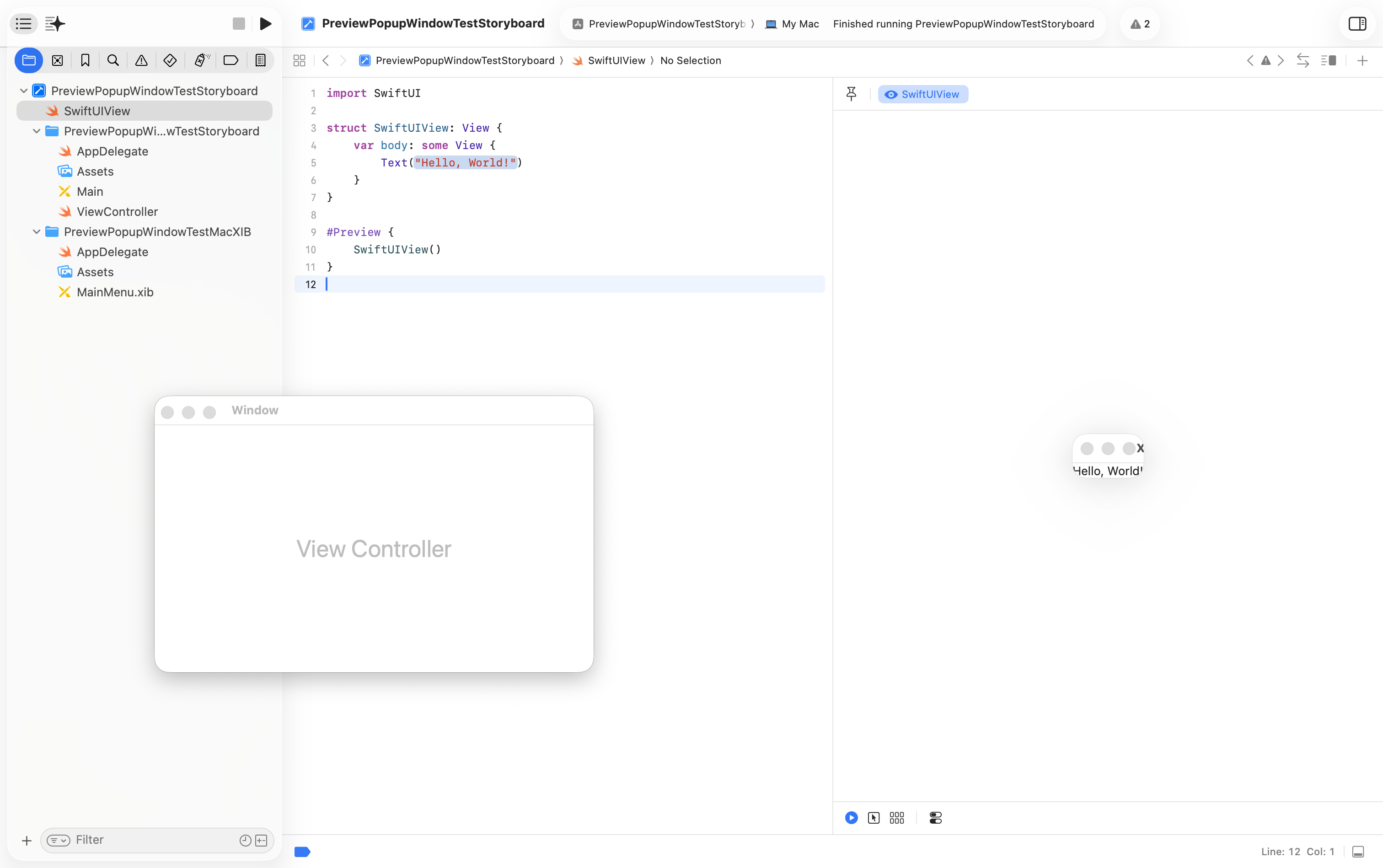 I started a project targeting macOS and used Storyboard app lifecycle. I also used Xcode Previews in this project.