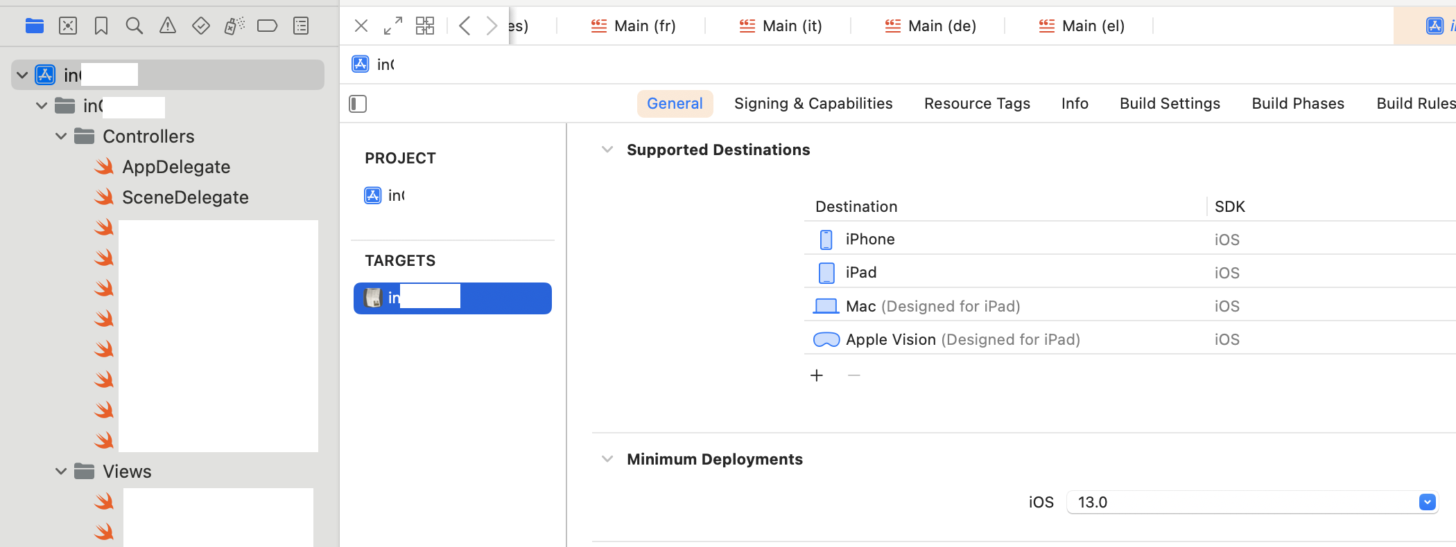 - Select the app in file navigator panel of Xcode