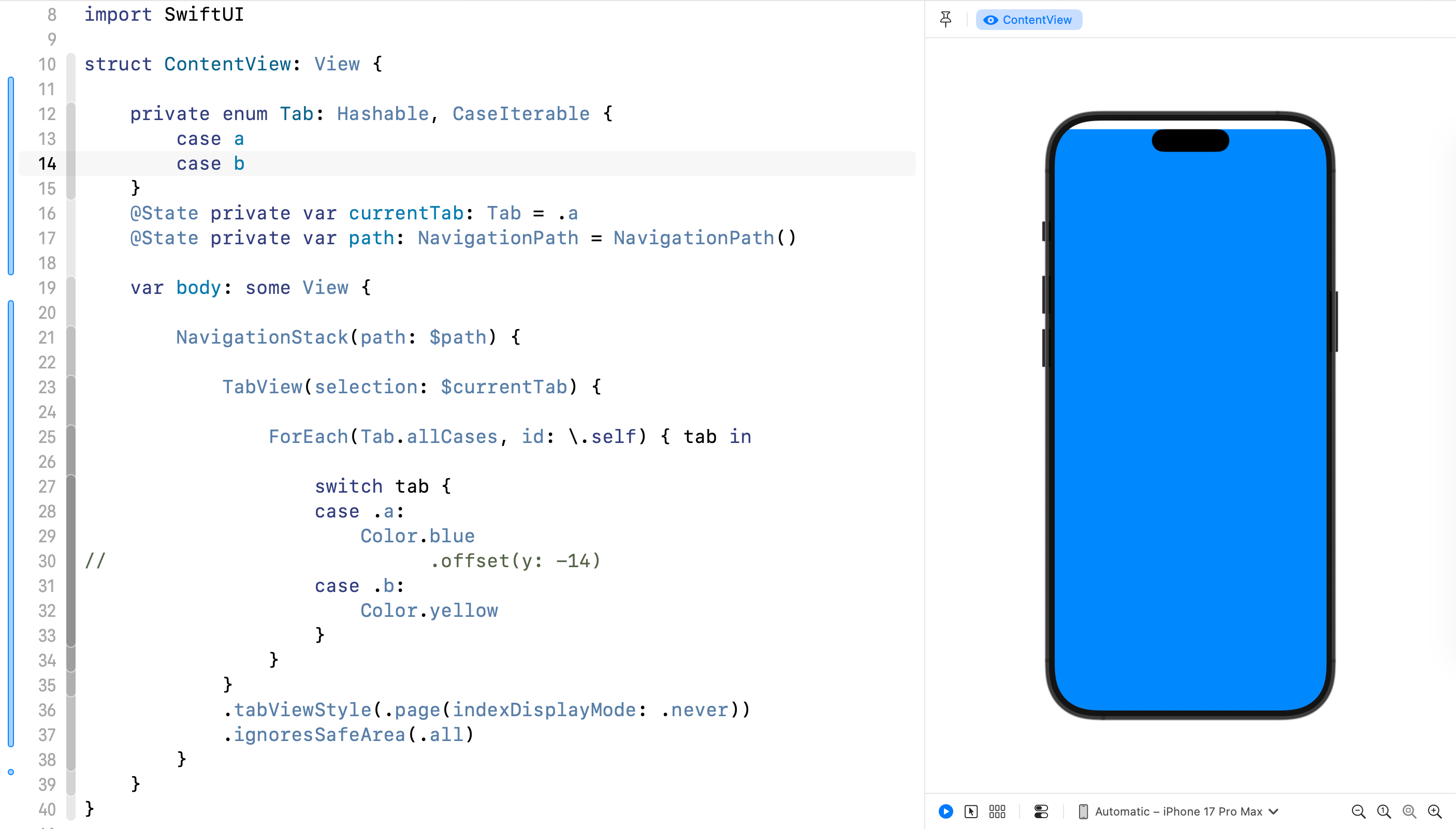 @State private var currentTab: Tab = .a