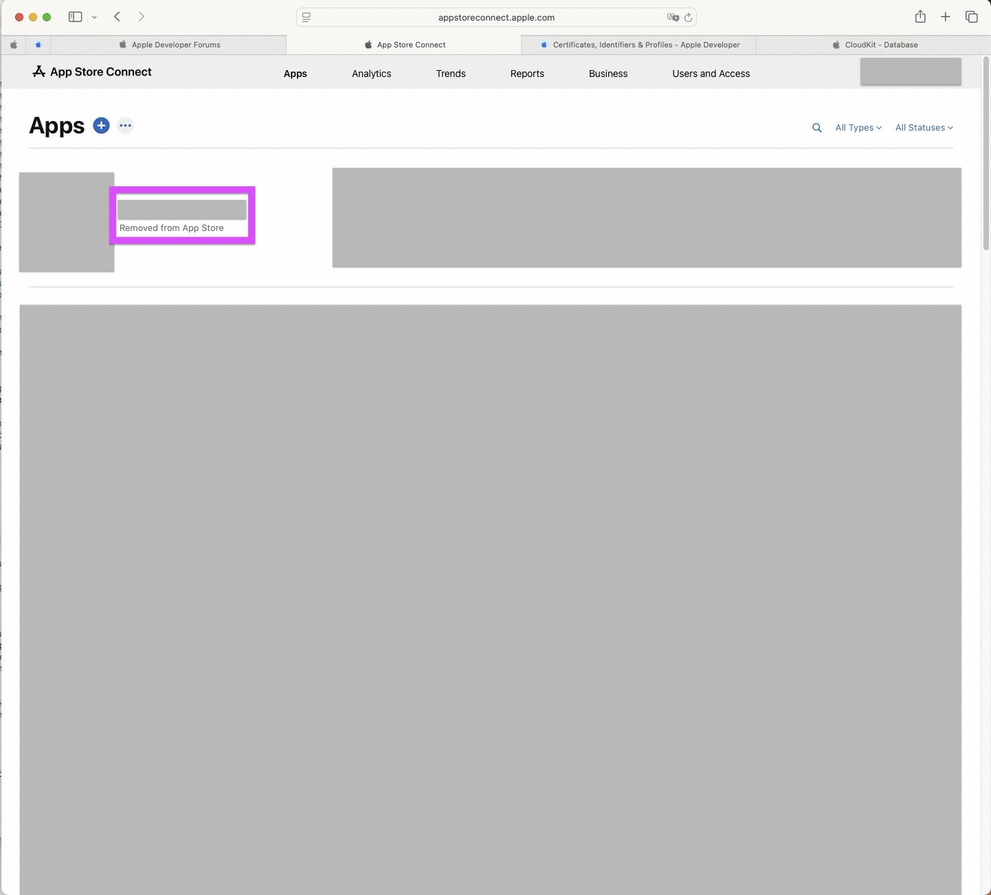 I happened at the iTunes Connect website at that very moment in order to submit a totally new iOS app to the App Store. Its status said 'Removed from App Store.' I thought it was a rare mistake. Unfortunately, it's not. The one that I was submitting was approved some 15 minutes ago. I received the 'Ready for Distribution' message by email. Yet, it's been removed from the store as you see in the screenshot below.