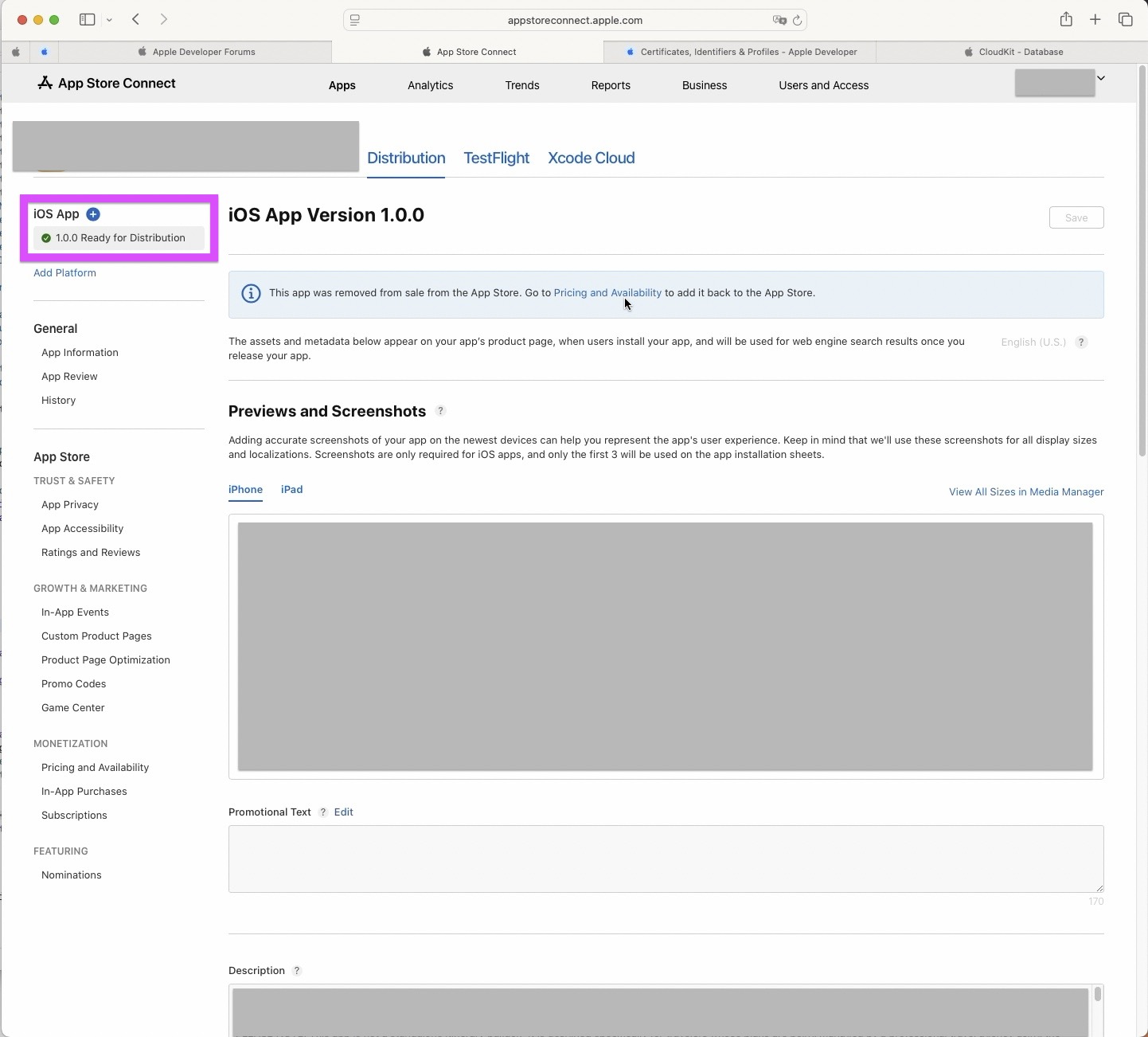 The status of your app has changed to Ready for Distribution