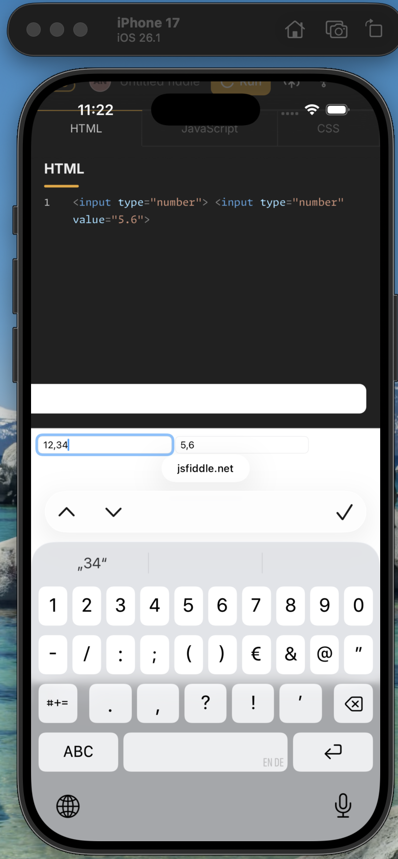 How to use the correct decimal separator in html number inputs for the user selected language in iOS/macOS on iOS 26.2 and newer versions? Is this maybe a bug?