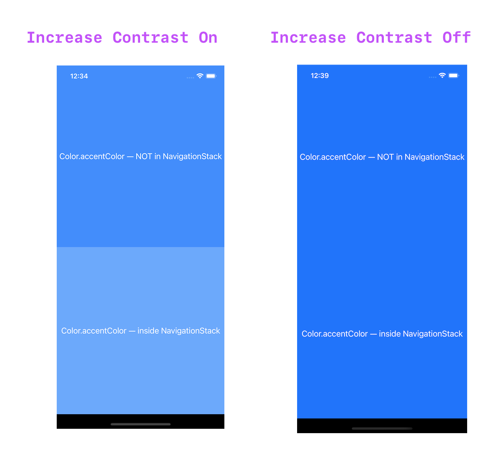 - Turn on Increase Contrast (Cmd-Control-Shift-A in Simulator).