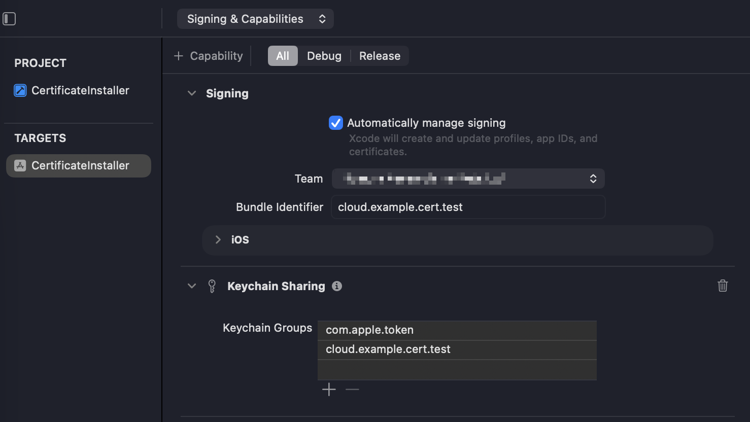 I’m developing an iOS application and aiming to install a PKCS#12 (.p12) certificate into the com.apple.token keychain access group so that Microsoft Edge for iOS, managed via MDM/Intune, can read and use it for client certificate authentication.
