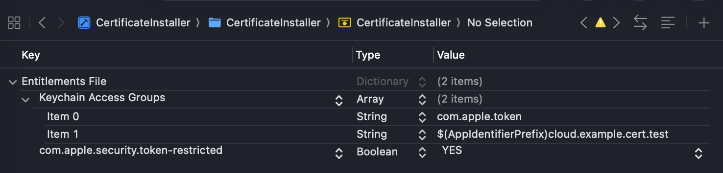 I’m attempting to save to the com.apple.token keychain access group, but I’m getting error -34018 (errSecMissingEntitlement) and the item isn’t saved. This occurs on both a physical device and the simulator.