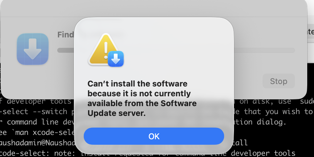"can't install the software because it is not currently available from the software update server"