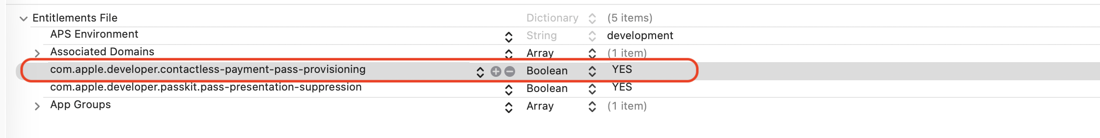 <key>com.apple.developer.contactless-payment-pass-provisioning</key>