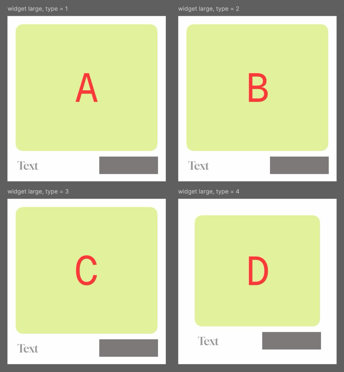 The Issue: On the Home Screen, Widget D appears to have an unwanted internal padding or "squeezed" content inset, even though it shares a similar structural implementation with the other functional widgets.