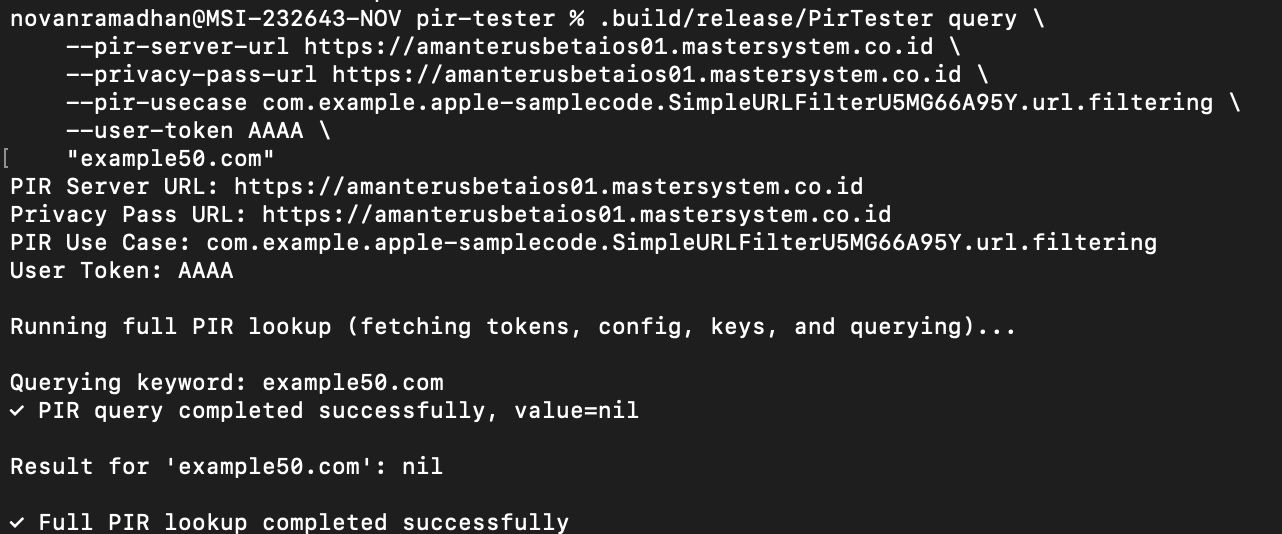 I downloaded the sample app and put our pir service server address in the app. The service is already running and the app is connected to the pir service but the url is still not blocked. We tried to block example.com. Is there anything that we need to do in iOS code?