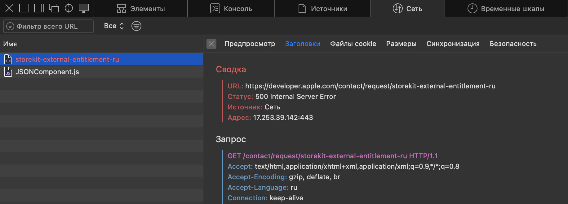 However, the official request page consistently returns a 500 Internal Server Error: https://developer.apple.com/contact/request/storekit-external-entitlement-ru