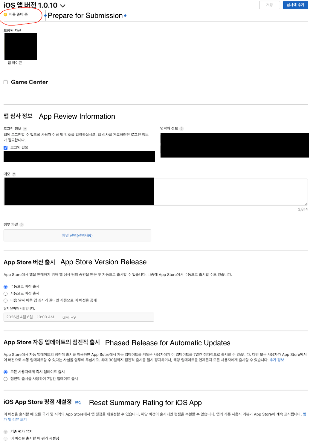 - App version 1.0.10 is still “Prepare for Submission”