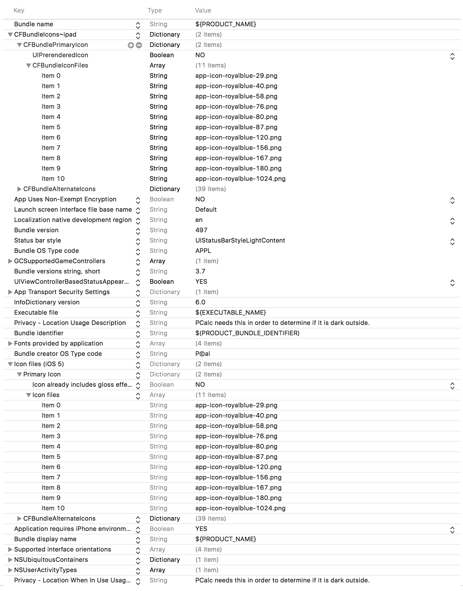 Migrate to Use Asset Catalog, which moved Primary Icons to Asset Catalog and kept alternate icons in Info.plist