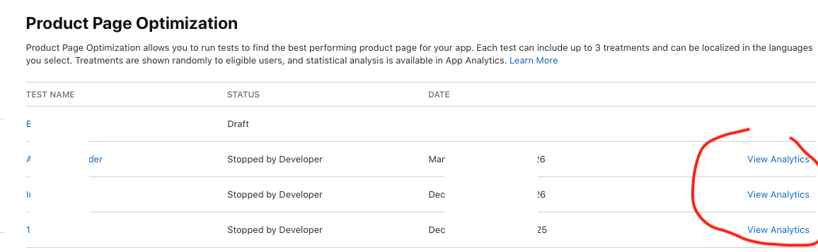 Whenever I tap on "View Analytics" in Product Page Optimization,