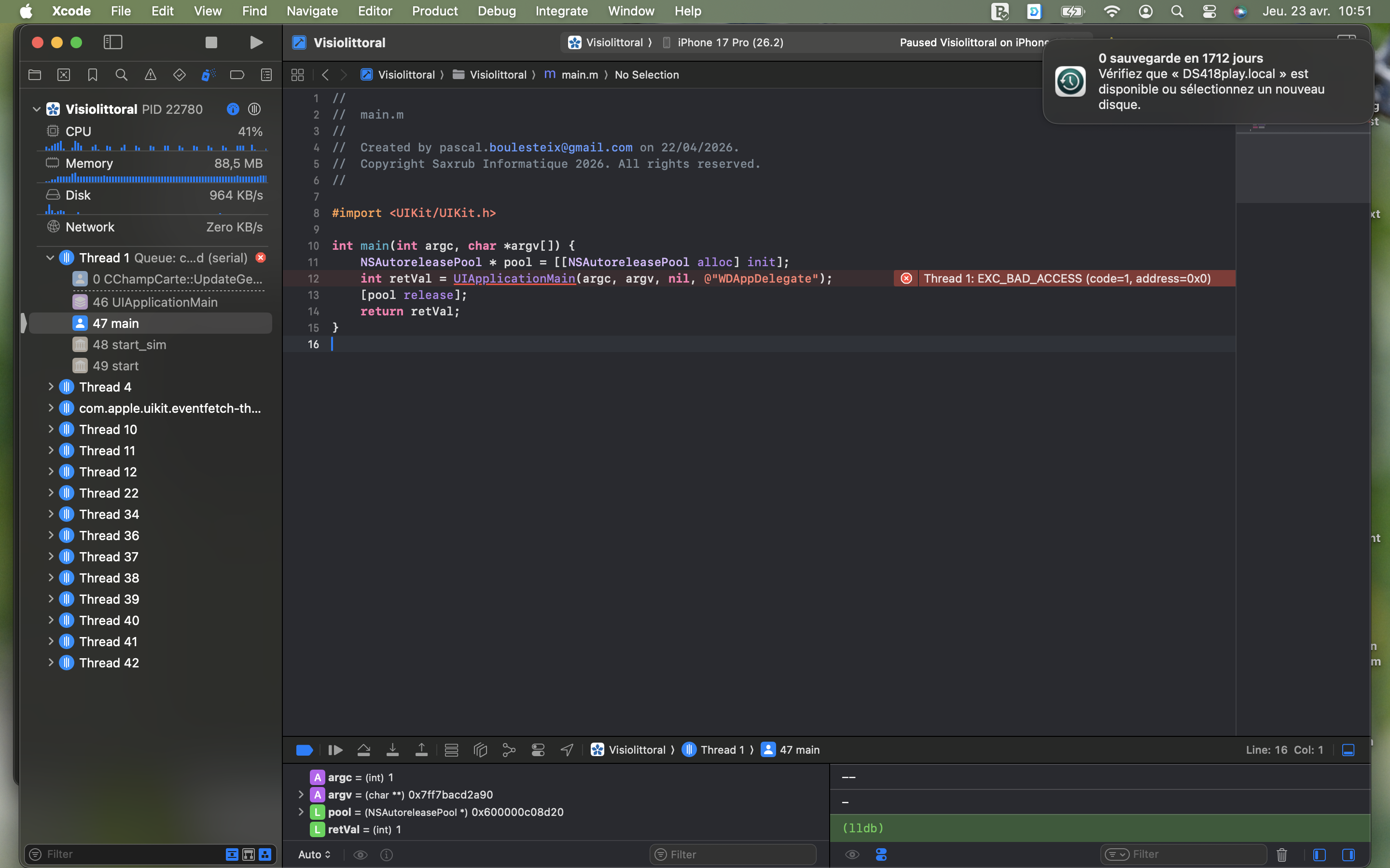 Hoping to get some help with this crash, I had the idea to test the application using Xcode.