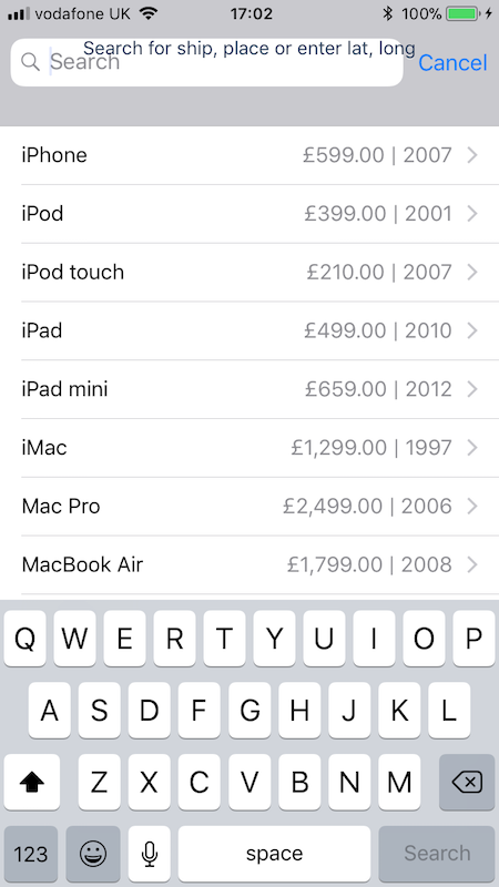 We have ound a problem with the Prompt label field in the UISearchBar. (tested in iOS beta 6 and 7). It used to be above and outside the Search field . It now appears over the Search field - near the top - but overlapping any Search text you enter and looks very ugly. Reproducible using Apples Example code