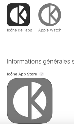 Now since my app icon includes white and some very dark grey that has more blue that red or green, the App Store backend processes it like a color image instead of a greyscale one. And it's now looking good as expected!