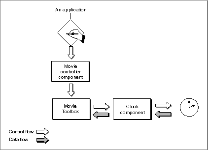 Figure 2-1 shows the relationships between an application, the movie controller component, the Movie Toolbox, and a clock component.