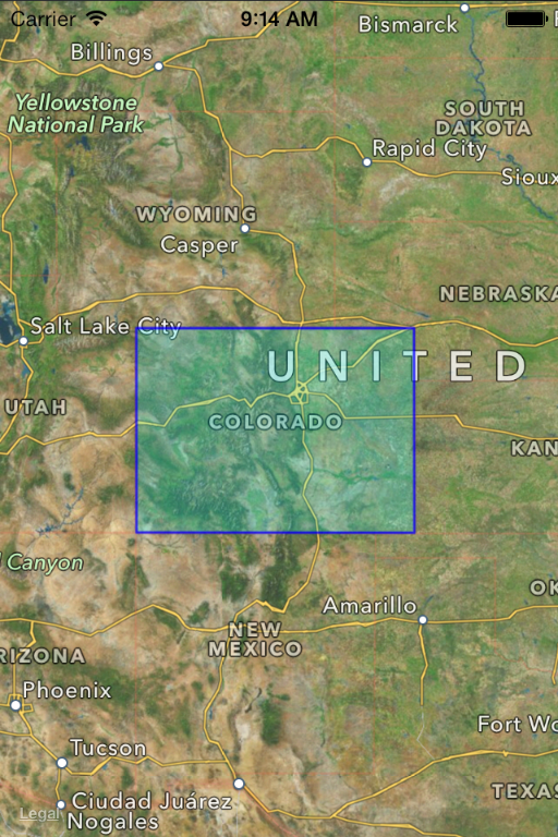 Figure 6-4 shows the results of drawing custom content over the overlay for the state of Colorado. In this case, the overlay renderer fills its content with a custom gradient.
