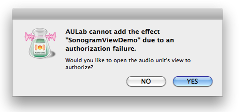 Audio Unit Host applications such as AULab specifically check for kAudioUnitErr_Unauthorized and will present the user with a dialog asking if they would like to authorize the audio unit. This mechanism allows displaying an audio unit's custom user interface which should contain interface elements for handling the authorization process as required.