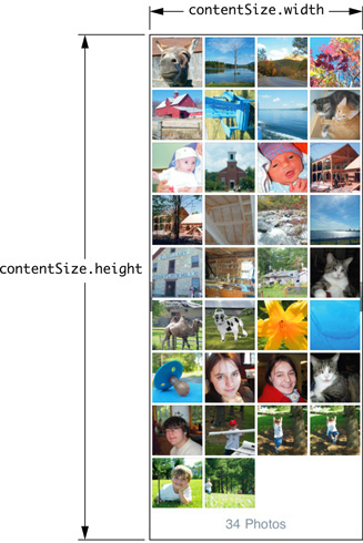 After you have created and configured the scroll view, you must add a subview or subviews to display the content. Whether you should use a single subview or multiple subviews directly in your scroll view is a design decision that is usually based on one requirement: Does your scroll view need to support zooming?