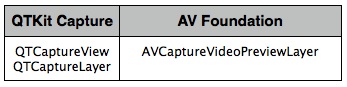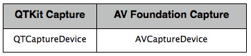 AV Foundation also provides a full suite of capture APIs that give you full access to the camera and provide for flexible output. The classes that make up the AV Foundation capture APIs closely resemble those in QTKit.