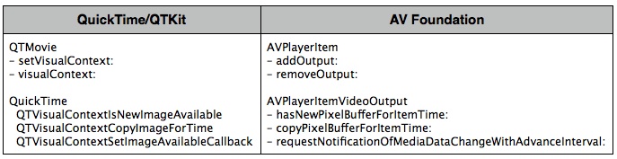 Here's a summary of the classes for representing audiovisual media with QTKit and AV Foundation:
