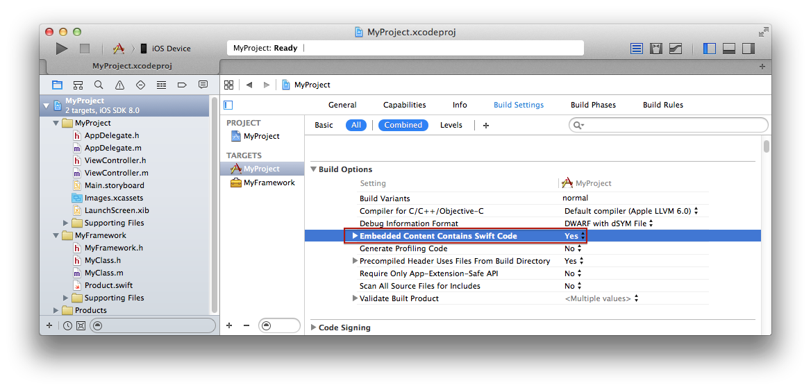 | 2014-10-07 | New document that describes how to embed content with Swift in an Objective-C app. |