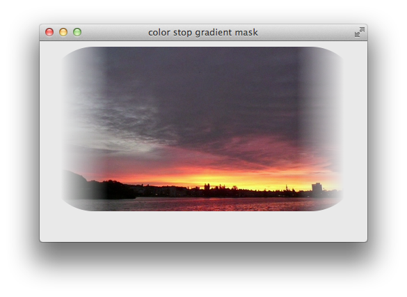 The example just given goes from opaque to transparent over the height of the image, but you can use different gradient parameters to achieve different effects. The following snippet creates a gradient from left to right and uses color stops to fade an image sharply at the edges, as shown in Figure 2-6. Notice that the image’s border radius works in concert with the mask.