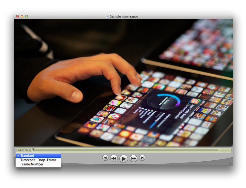 You may also toggle the timeline display as desired as shown in figure 2. The display says Drop-Frame in figure 1 because the format description we created to represent the type of sample we wrote in listing 3 contained the kCMTimeCodeFlag_DropFrame flag and therefore the timecode media sample is being interpreted as 29.97 drop-frame.
