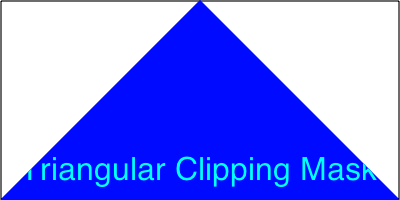 to make the shape a clipping mask. The example then fills the canvas with a blue rectangle and draws some text. The rectangle and text are clipped when they fall outside the boundaries of the triangle, as shown in Figure 2-3. Note that the black outline around the canvas is drawn prior to the mask, and so is unaffected.