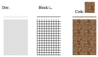 The example in Listing 3-4 loads three images—dot.png, block.png, and cork.png—and makes them into patterns that are each used to stroke a line and fill a rectangle. The result is shown in Figure 3-7.