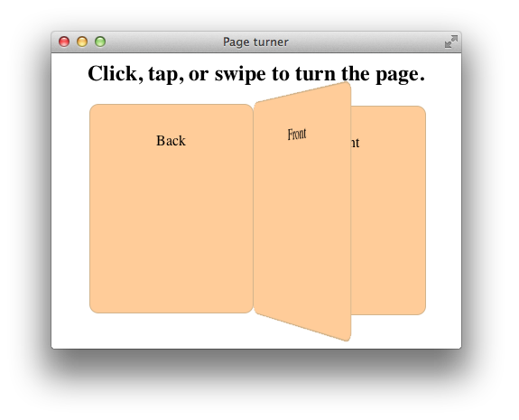 In the next example, the user can flip a virtual page forward or backward with a click, a tap, or a swipe. Two div