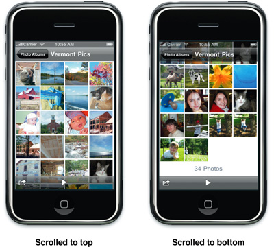 You can optionally configure any visual cues your application requires—vertical and horizontal scroll indicators, drag bouncing, zoom bouncing, and directional constraint of scrolling