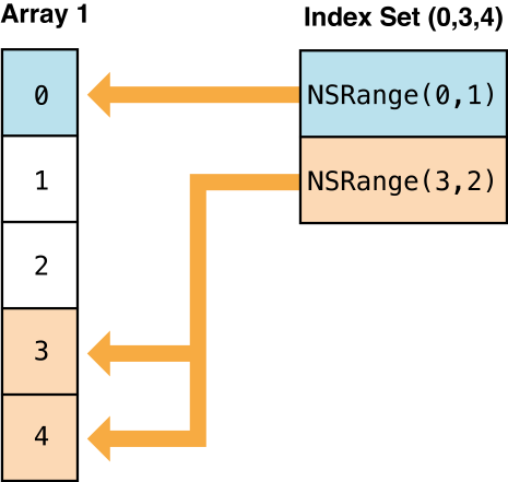 To access all of the objects indexed by an index set, it may be convenient to iterate sequentially through the index set. Iterating through the index set, rather than through the corresponding array, is more efficient, as it allows you to examine only the indexes that you are interested in. If you have an NSArray