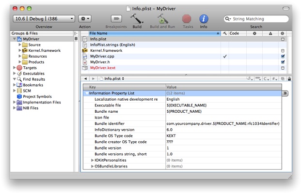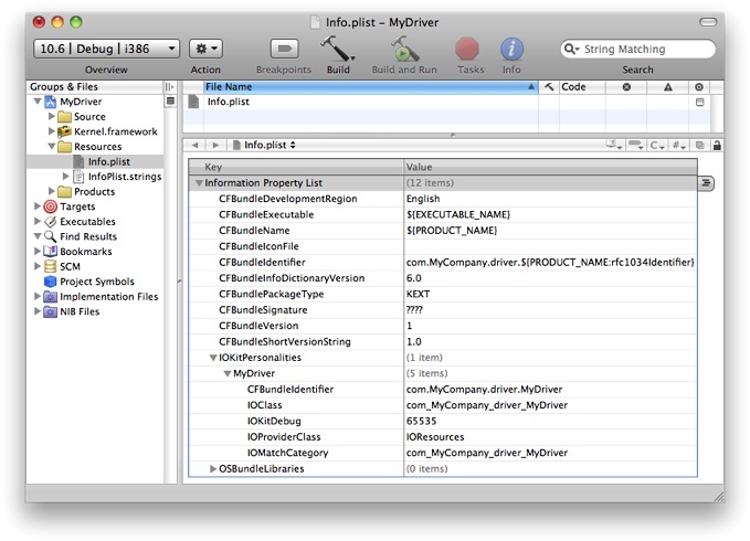 5. Rebuild your driver (choose Build > Build) with the new information property list. Fix any compiler errors before continuing.