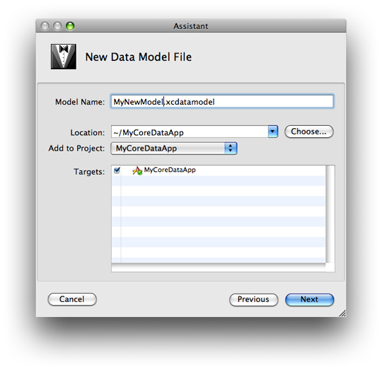 If you create a Core Data–based project, a data model is automatically created for you and added to the project. If you need to create a new model, choose File > New File and in the the New File assistant—shown in Figure 1—select Design > Data Model and press Next.