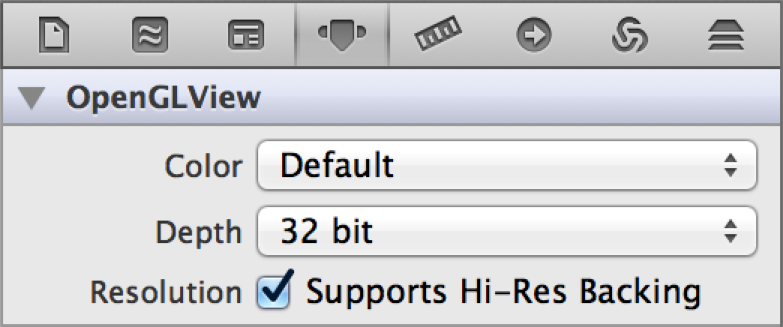 You can also opt in to high resolution by enabling the Supports Hi-Res Backing setting for the OpenGL view in Xcode, as shown in Figure 3-1.